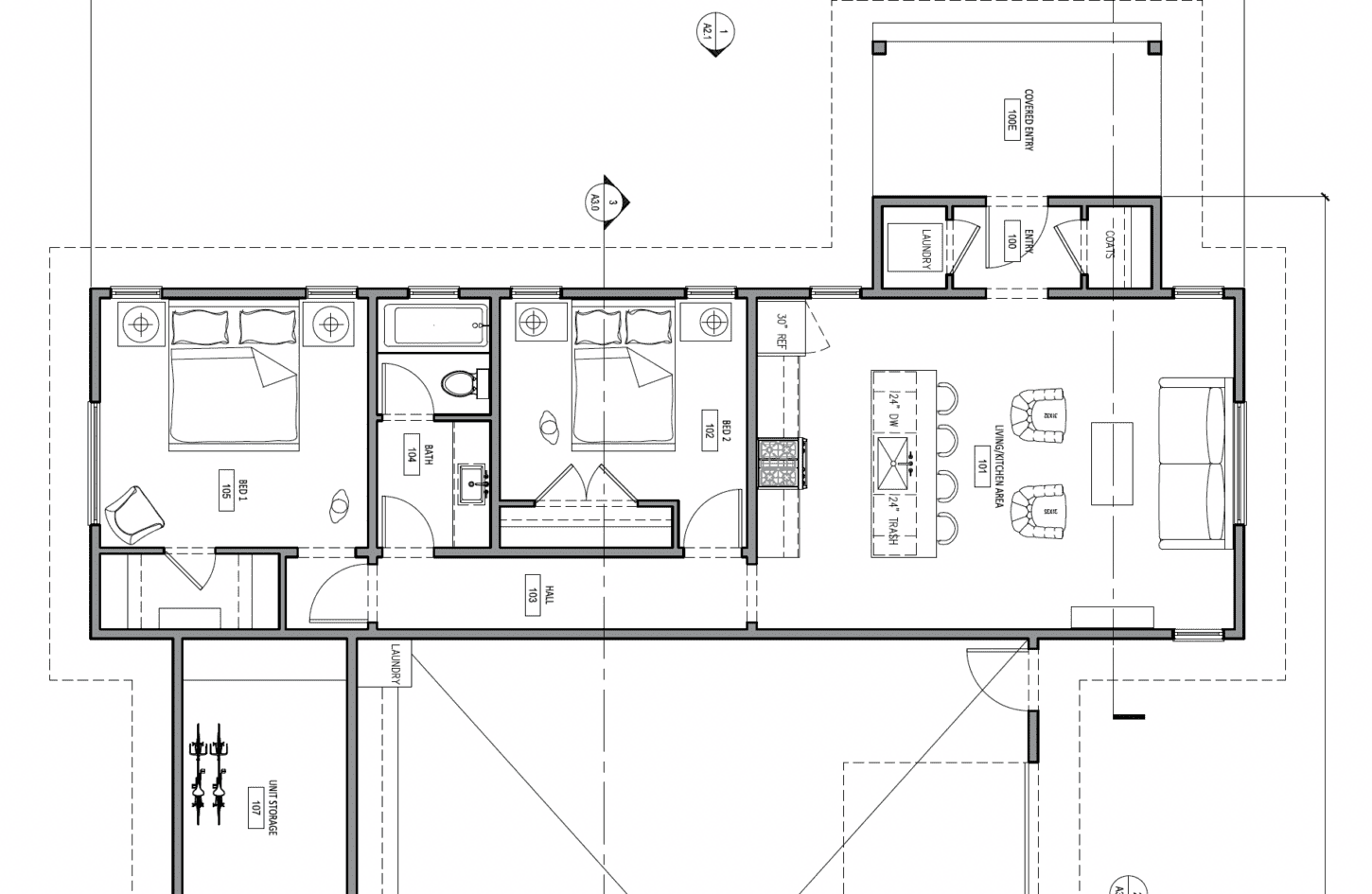 - • Two-bedroom units (~1,100 sq ft)